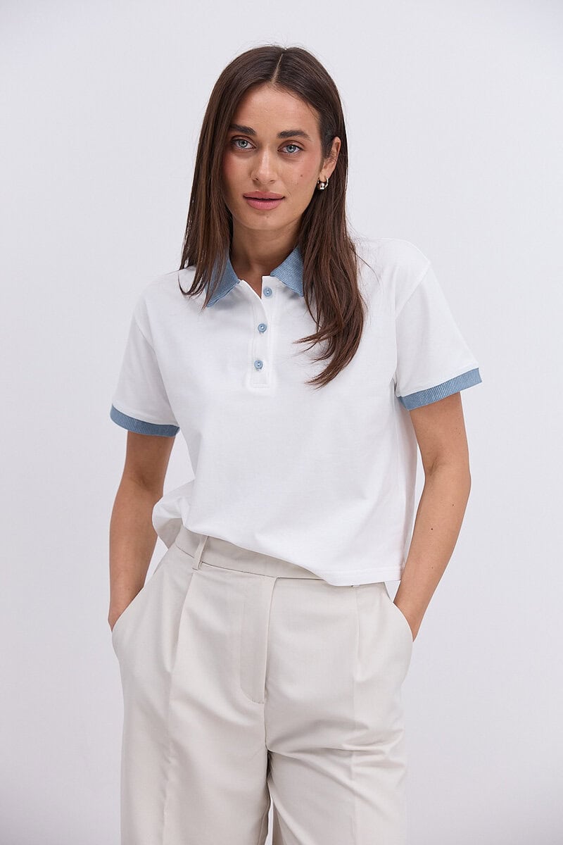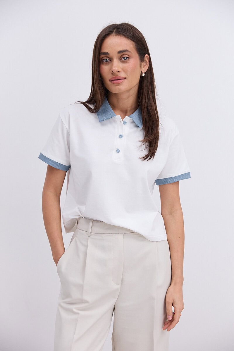 Ця футболка поло — чудовий вибір для жінок, які цінують комфорт, якість та витончений стиль.