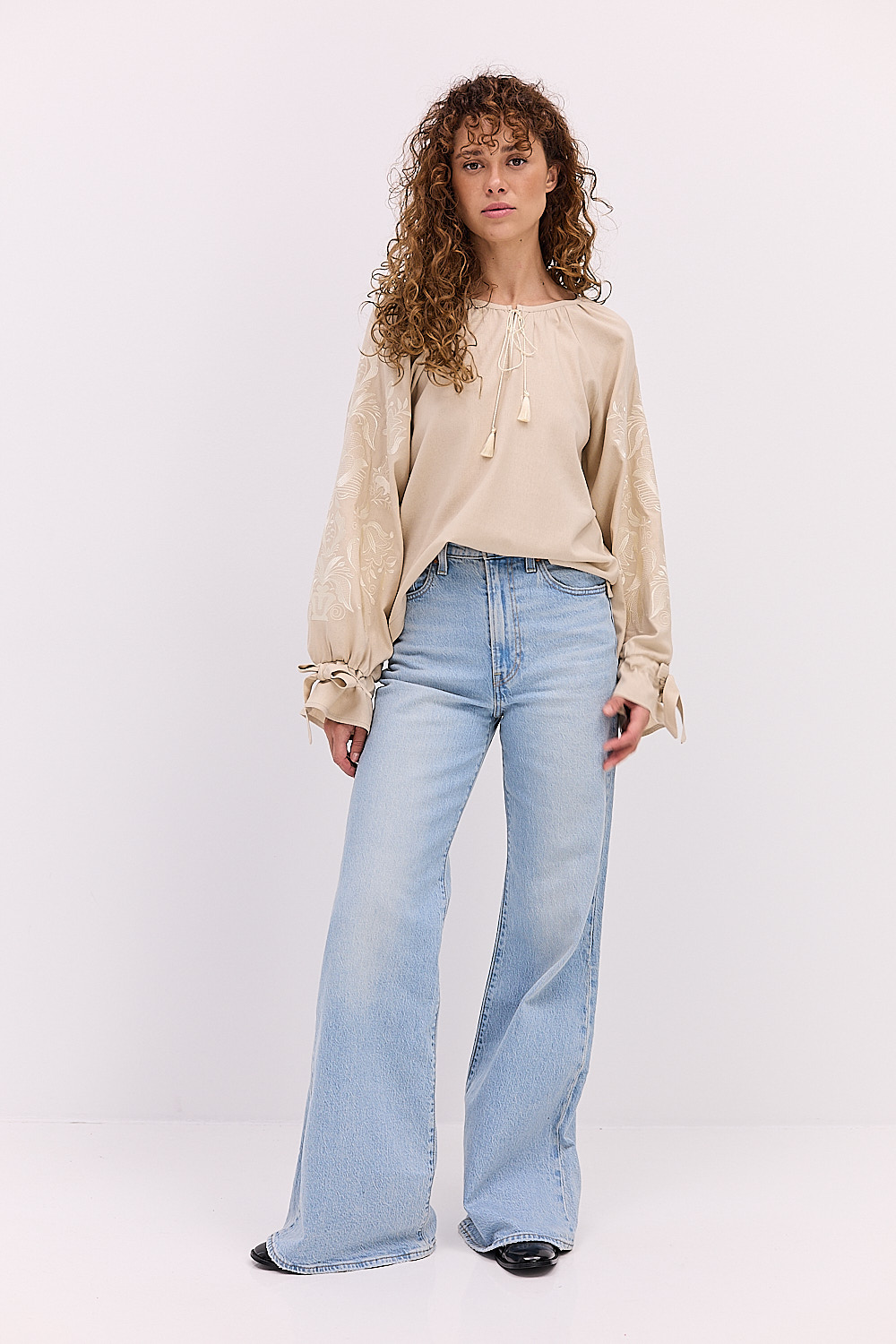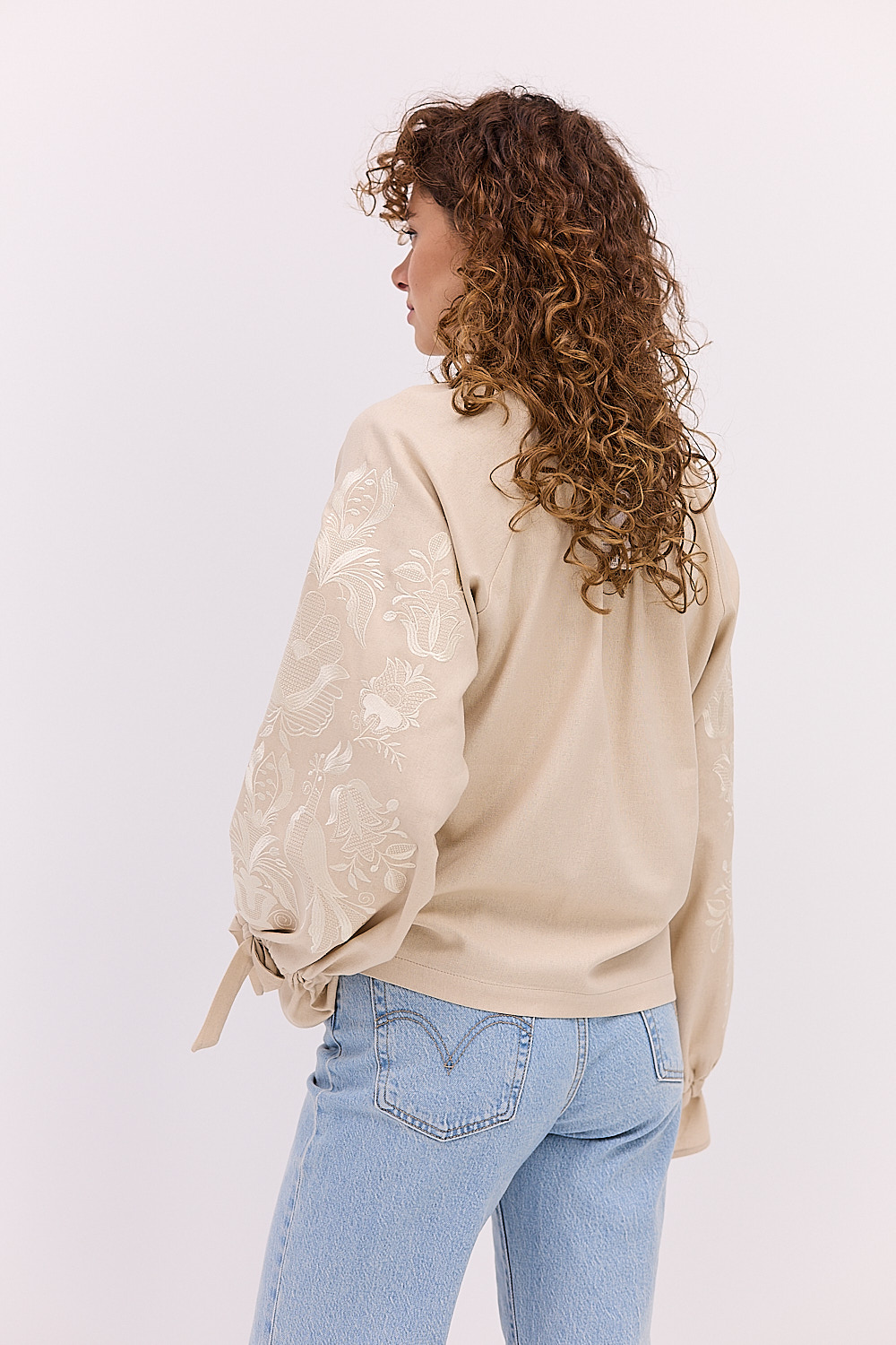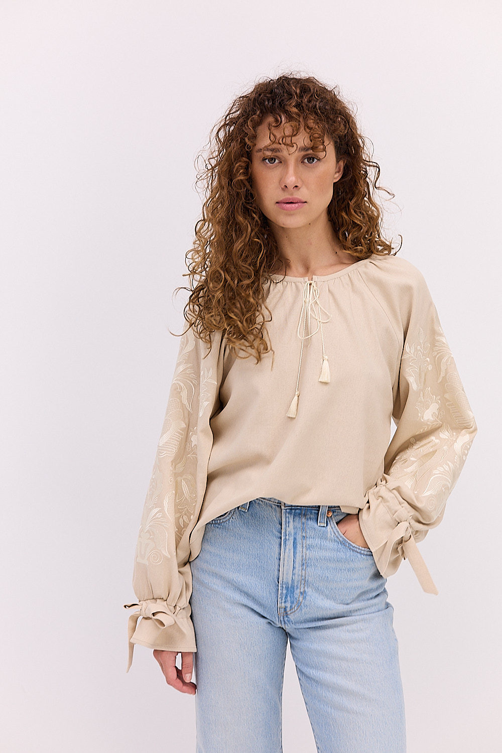 Жіноча вишиванка бежева з бежевим деревом життя гладдю