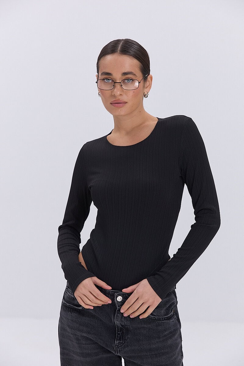 Жіноче боді з плісированого трикотажу чорного кольору – це ідеальний вибір для створення стильного та елегантного образу.