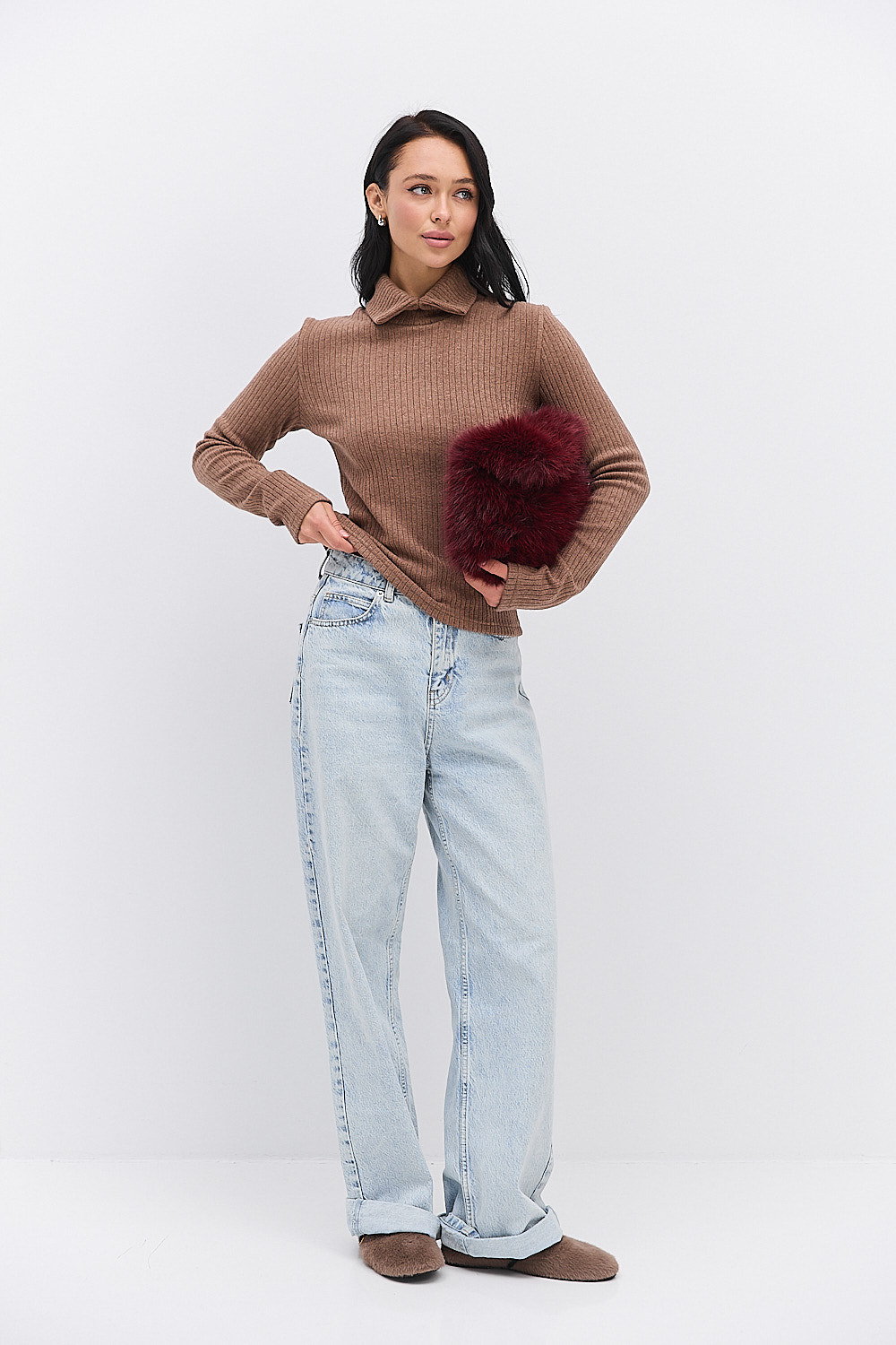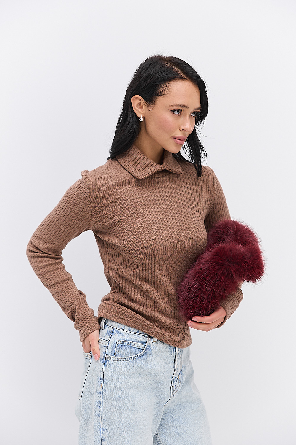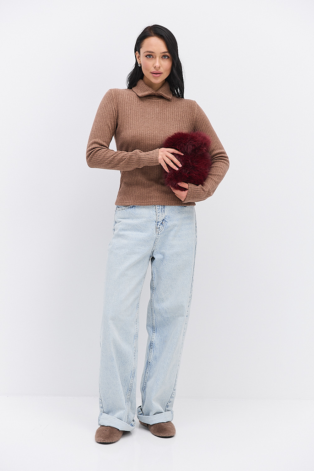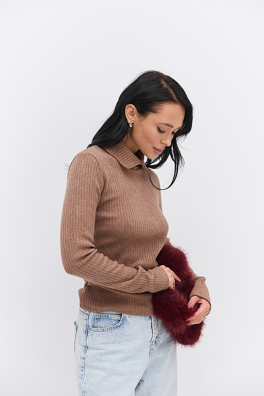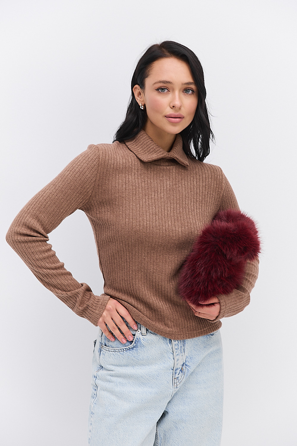 Будьте першим, хто залишив відгук на “Жіночий теплий лонгслів в рубчик коричневий зі стояче-відкладним коміром”
